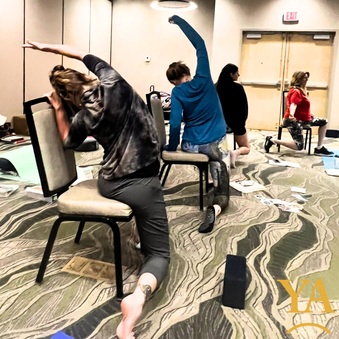Our Phoenix Based Corporate yoga brings yoga and mindfulness practices into the workplace to enhance employees' physical and mental well-being. With instructors throughout the Greater Phoenix area, we make it easy to bring yoga directly to your team. These sessions can include a range of practices—somatic exercises, stretching, breathing techniques, meditation, and relaxation methods—all of which can be done from a chair. This approach ensures employees can participate without leaving their desks, helping to reduce stress, boost productivity, and foster a healthier, more balanced work environment.
