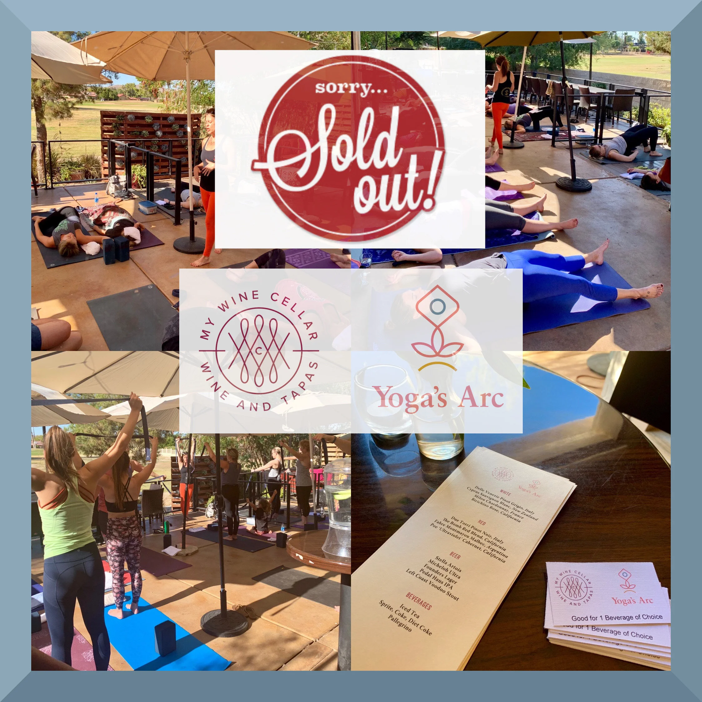Yoga's Arc is excited to partner with My Wine Cellar to bring you "Yoga on the Patio". A Saturday yoga series at My Wine Cellar! Come enjoy some yoga and wine, and then stay for snacks and lite bites! We will be practicing yoga on the back patio (along the Ahwatukee golf course).