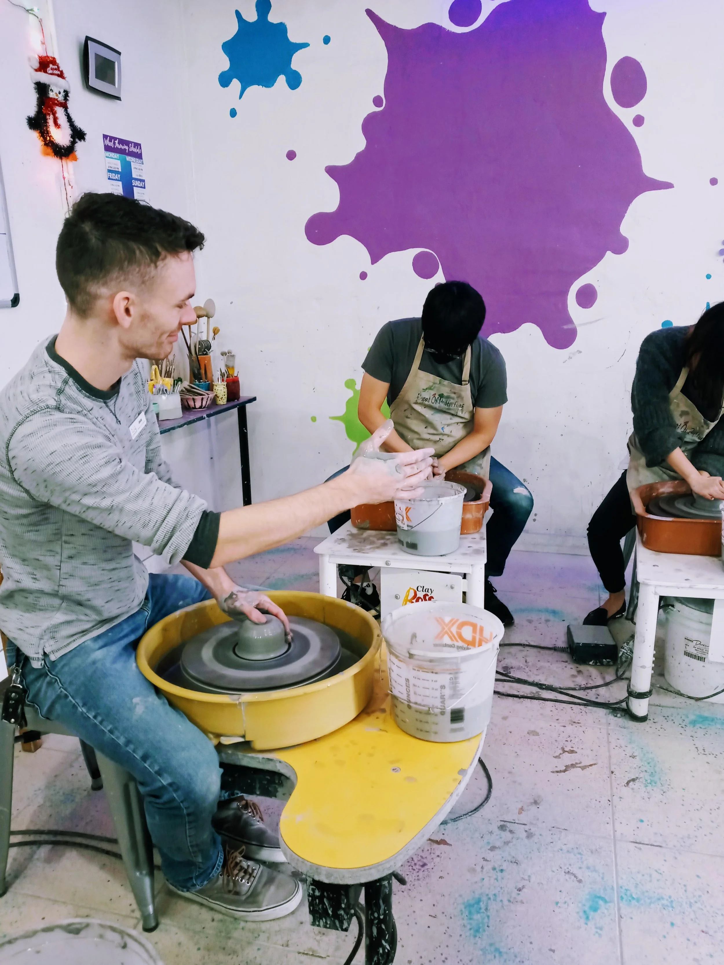After your yoga class, you will hop on a wheel and Burst of Butterflies will guide them through centering on the wheel. We will introduce our yogis to the traditional art form of spinning clay and help them build a relationship between body and clay. The focus of class will be learning how to guide and flow with the clay, when to be firm/unyielding vs gentle/flowing and when to push or pull the mud. The intention will be learning how to interpret your body's movements and how the clay reflects those actions while at the wheel.