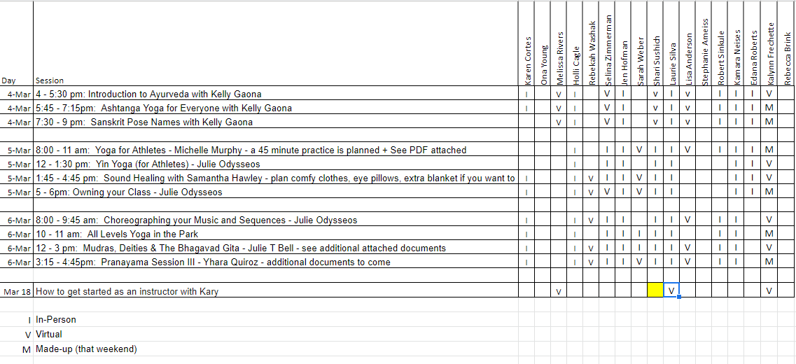 8:00 - 11 am: Yoga for Athletes - Michelle Murphy - a 45 minute practice is planned + See PDF attached