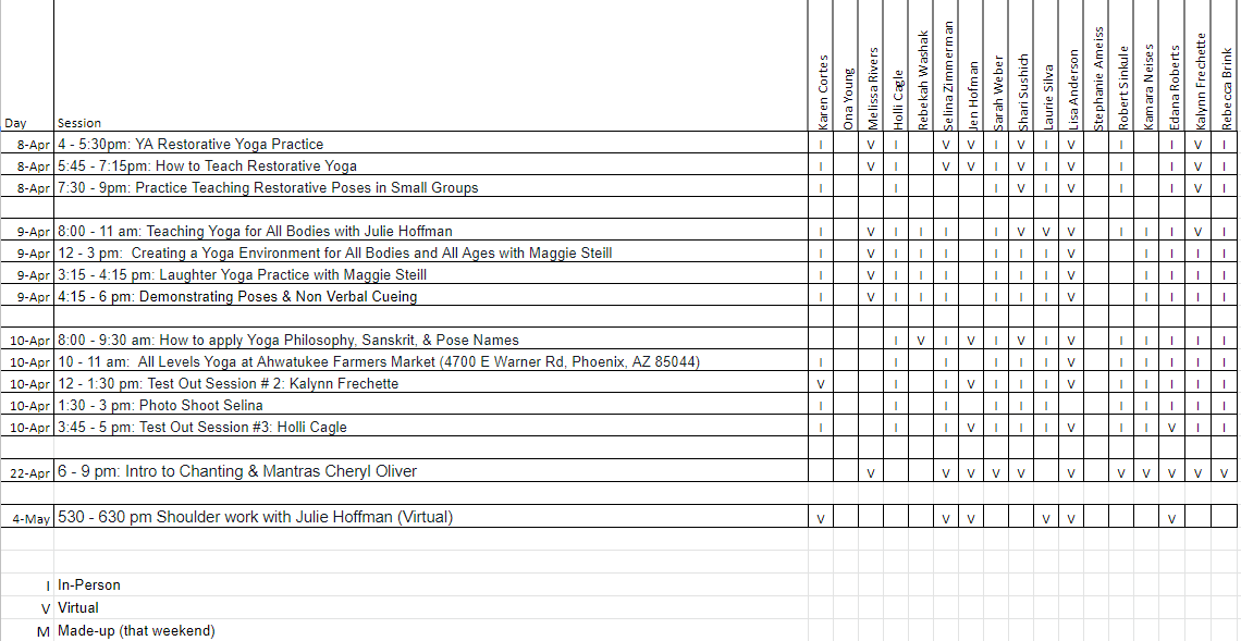 3:30 - 4:00 pm: YA YTT Housekeeping items